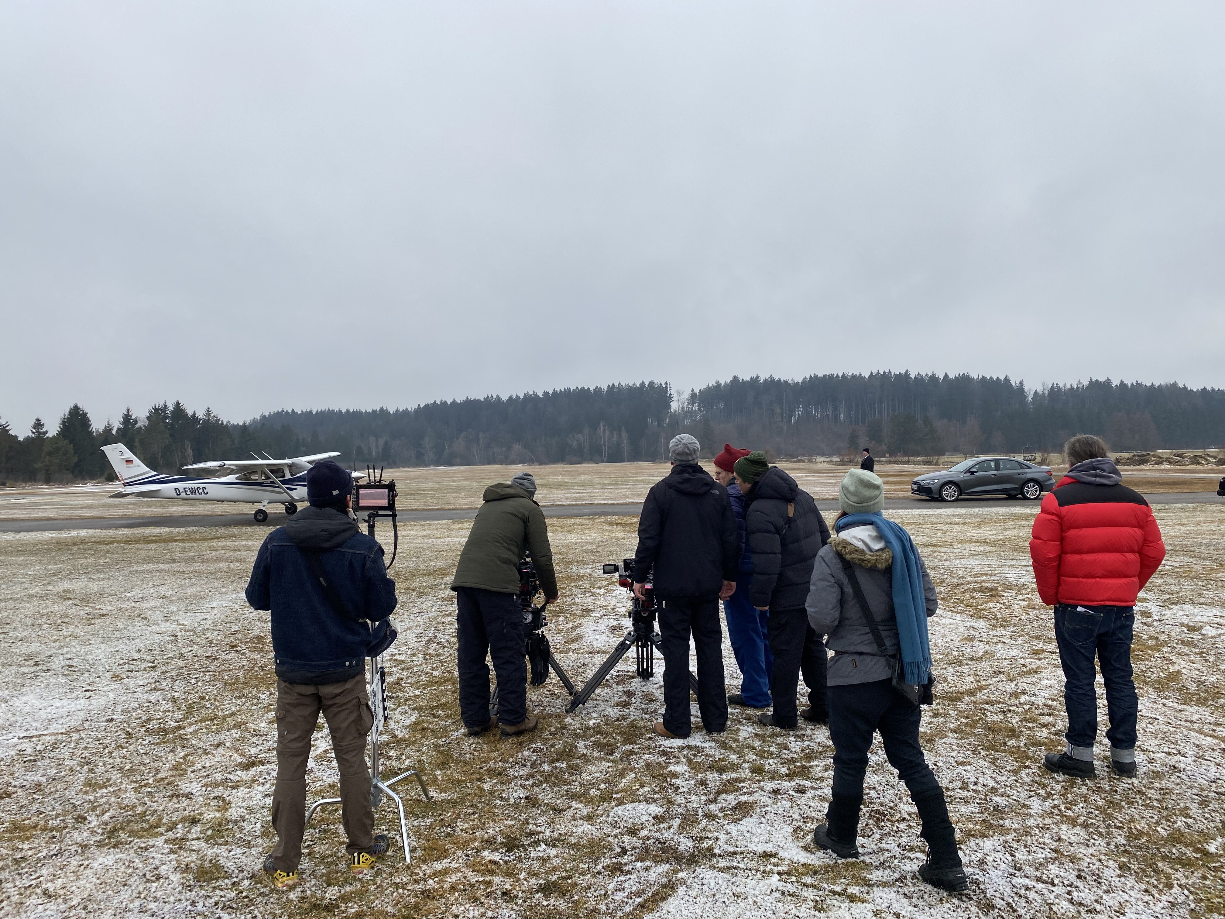 Dreh der Anfangsszene des Tatorts “Der sichere Tod” am Segelflugzentrum Königsdorf, bei der ein dubioser Koffer aus einem Flugzeug übergeben wird
